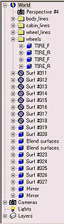 Create WHEEL FLARE surfaces. At the first, create FLARE END surfaces.